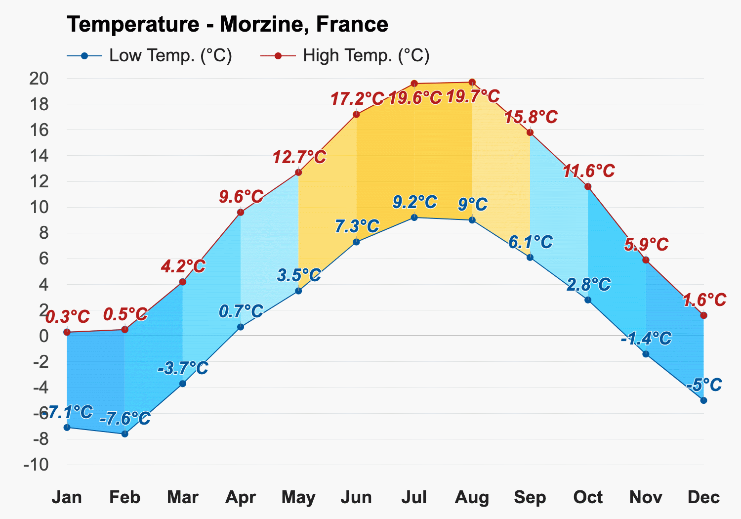 If you prefer warmer weather with vibrant flowers and lush greenery, spring and summer are the ideal seasons for an outdoor ceremony. Spring weddings (April to May) in the Dolomites offer stunning fields of wildflowers, while summer weddings (June to September) in the French Alps bring green valleys and clear skies, perfect for al fresco celebrations. Imagine exchanging vows in the Italian Dolomites, where alpine meadows are bursting with color, or in Morzine, a beautiful village in the French Alps surrounded by hiking trails and crystal-clear lakes. Below is a graph showing the average temperatures in Morzine throughout the year and you can find more details of the climate here.